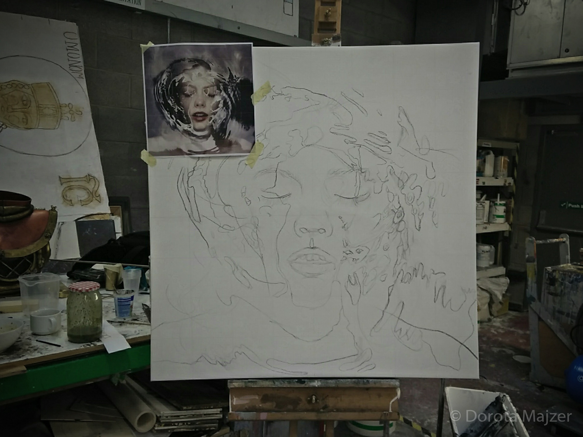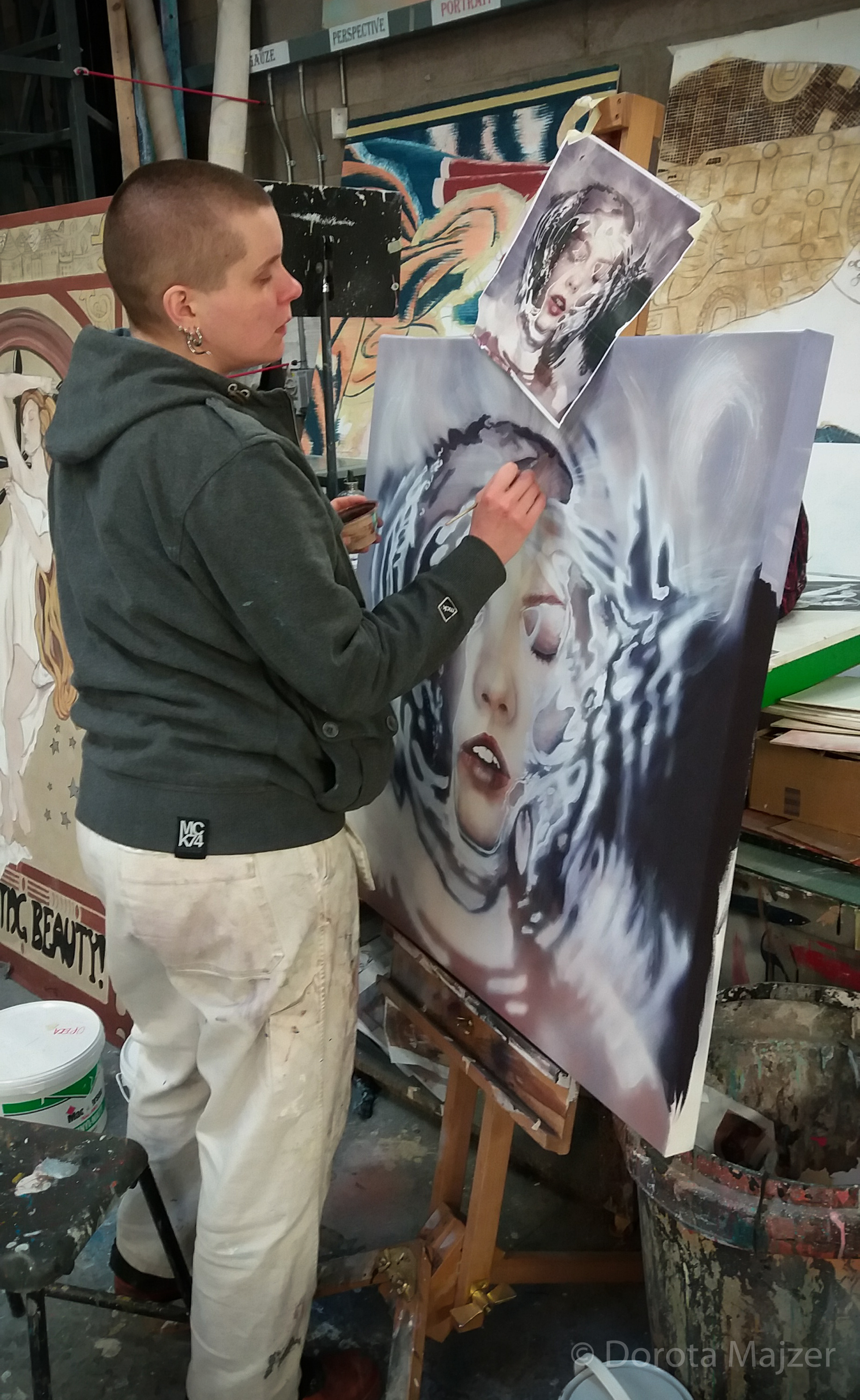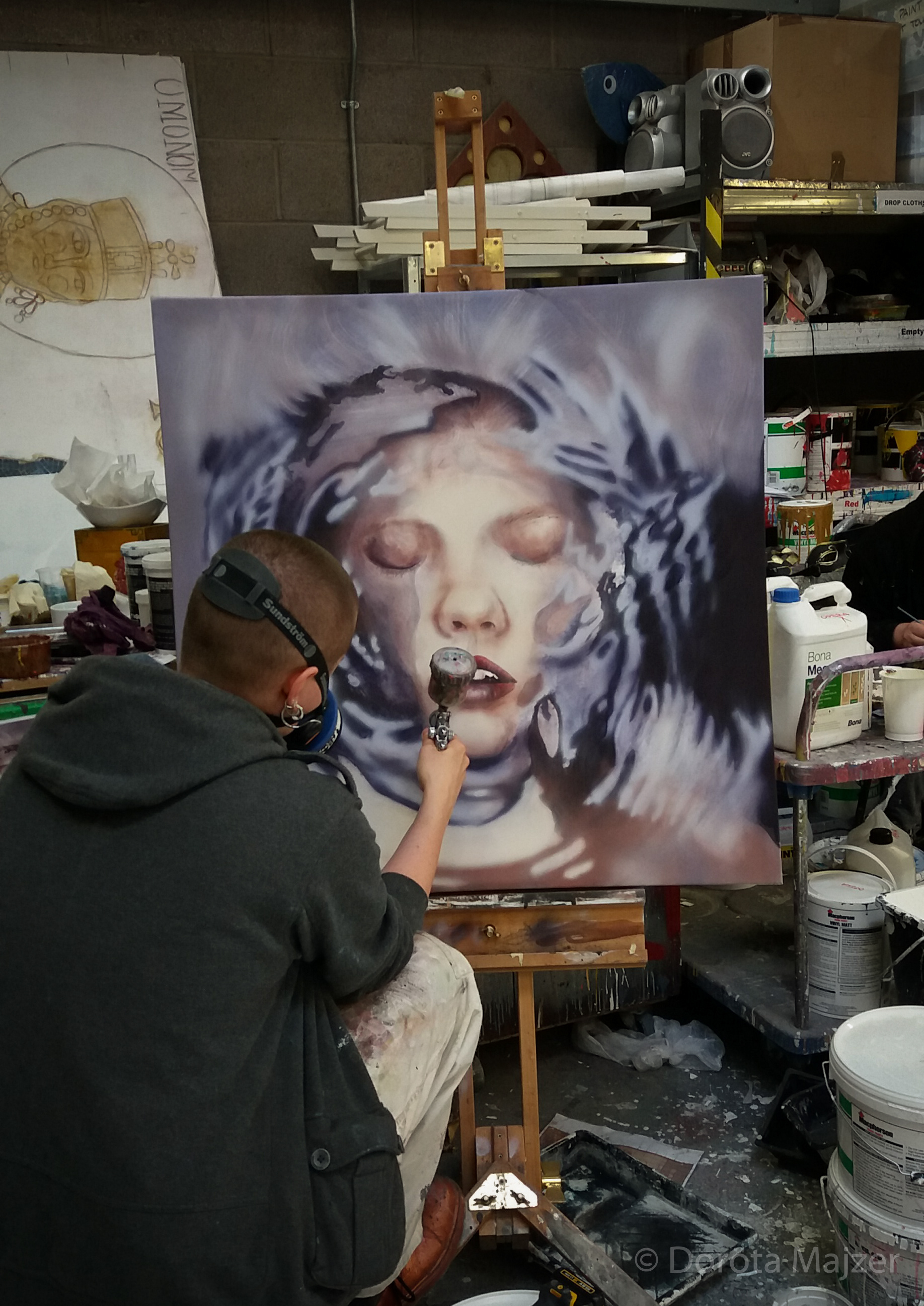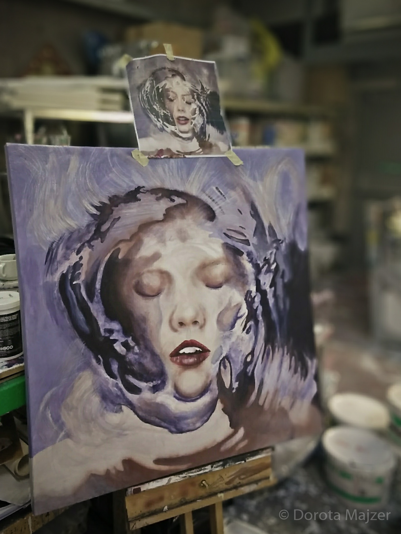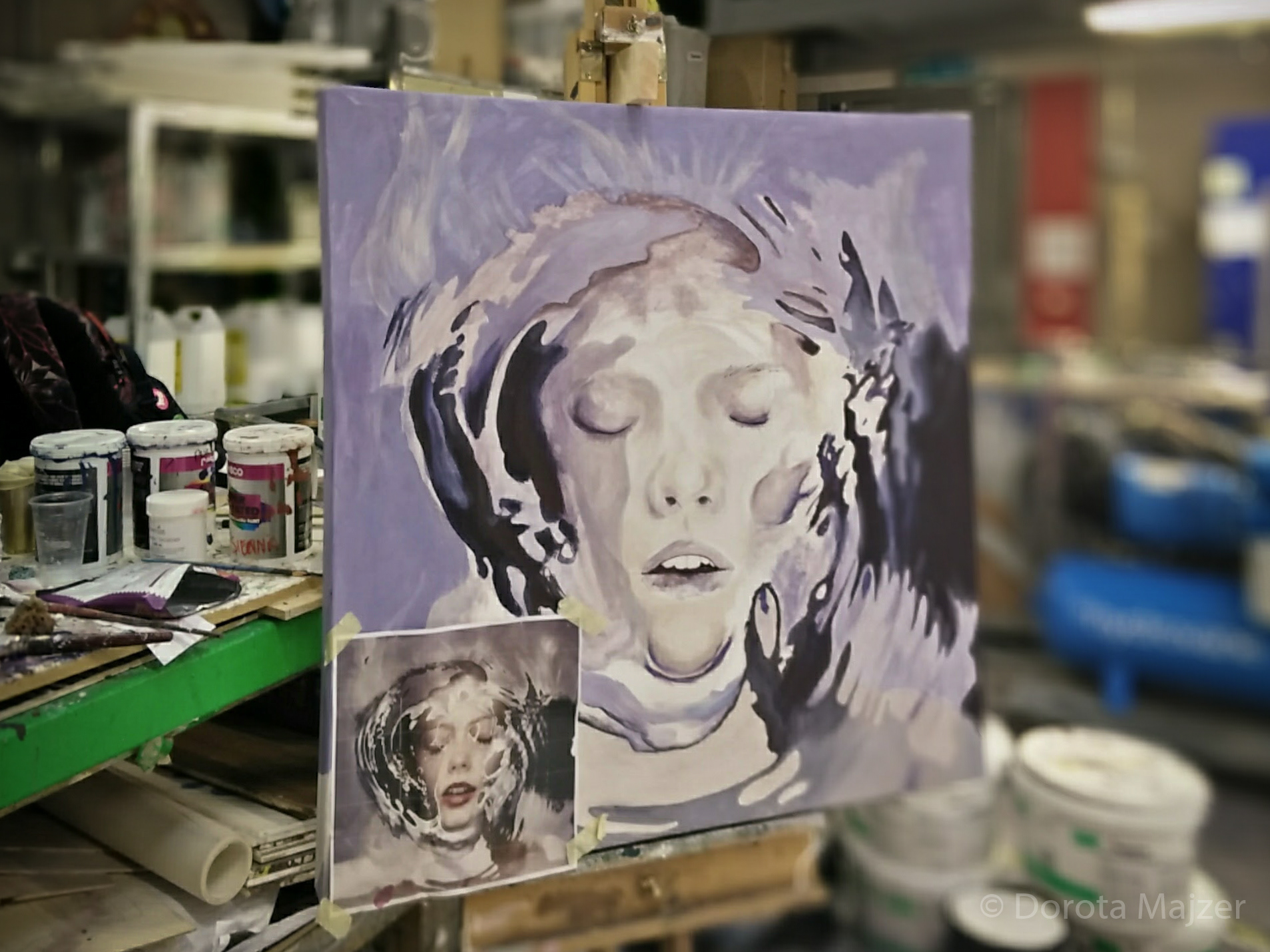 "Hyper-realistic" painting done with acrylic paint on canvas, based on a photo from a photoshoot by Saatchi & Saatchi, depicting a woman partially submerged under water. The canvas size is around 1m x 1m.